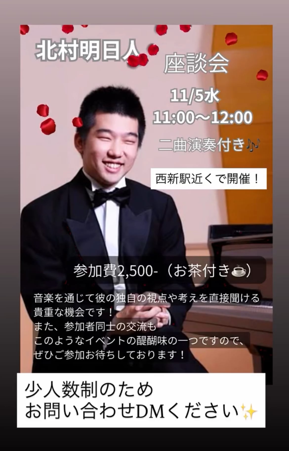 この座談会では、北村明日人さんが自身の音楽活動やこれまでの経験を通して語る貴重なトークの時間をお楽しみいただけます。参加者の皆様からの質問にもお答えし、音楽の魅力について深く語り合う素晴らしい機会です!